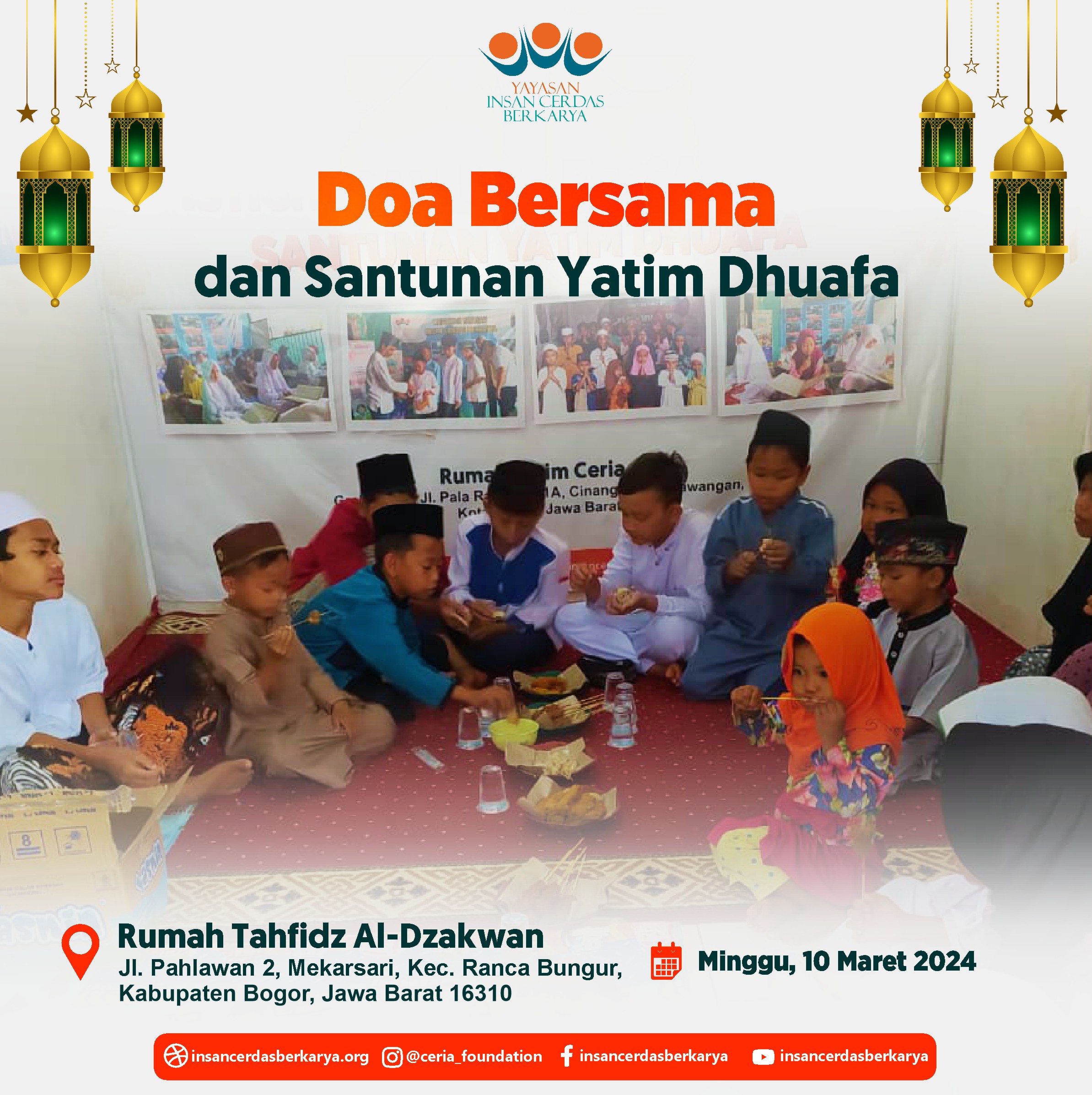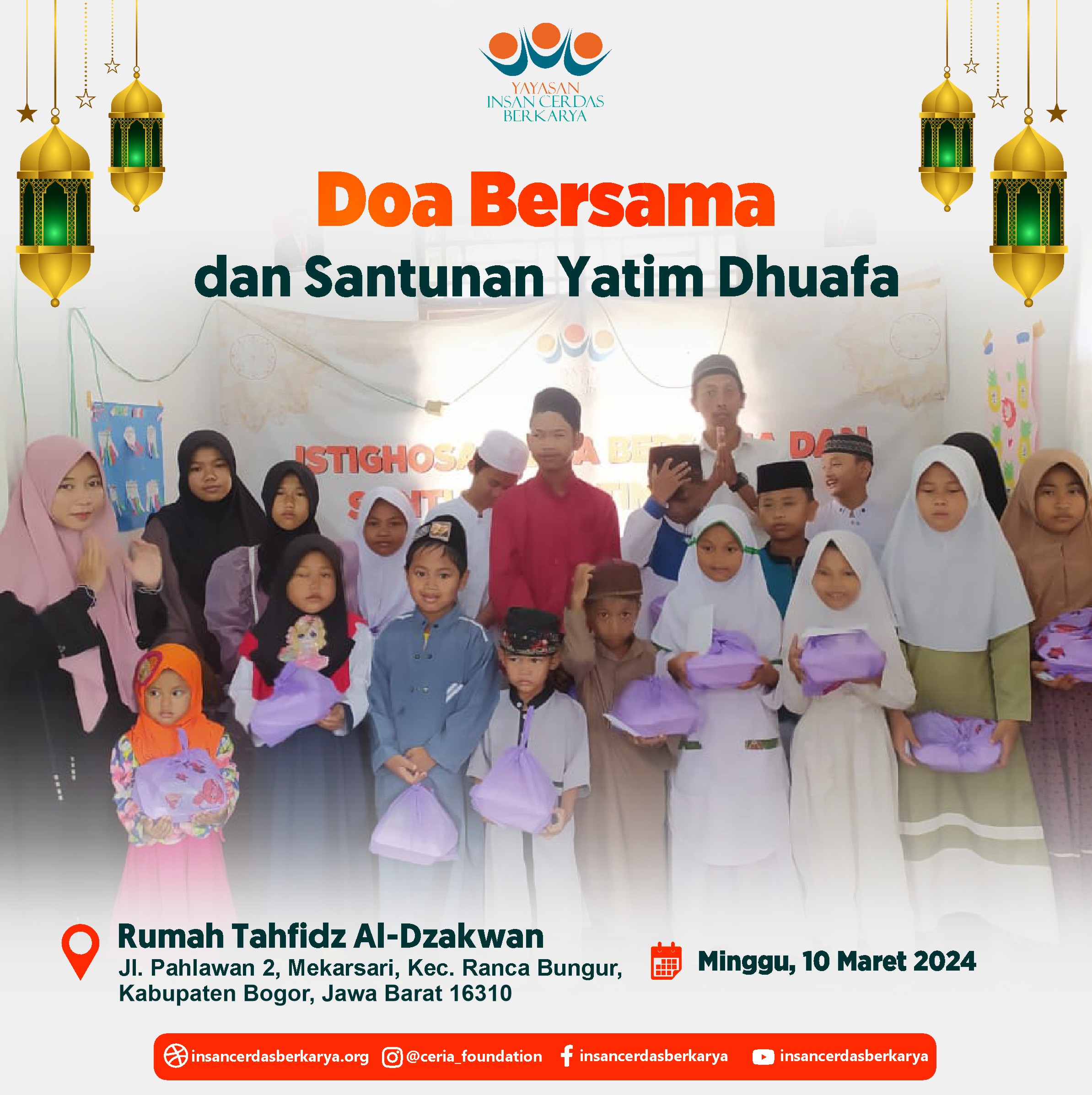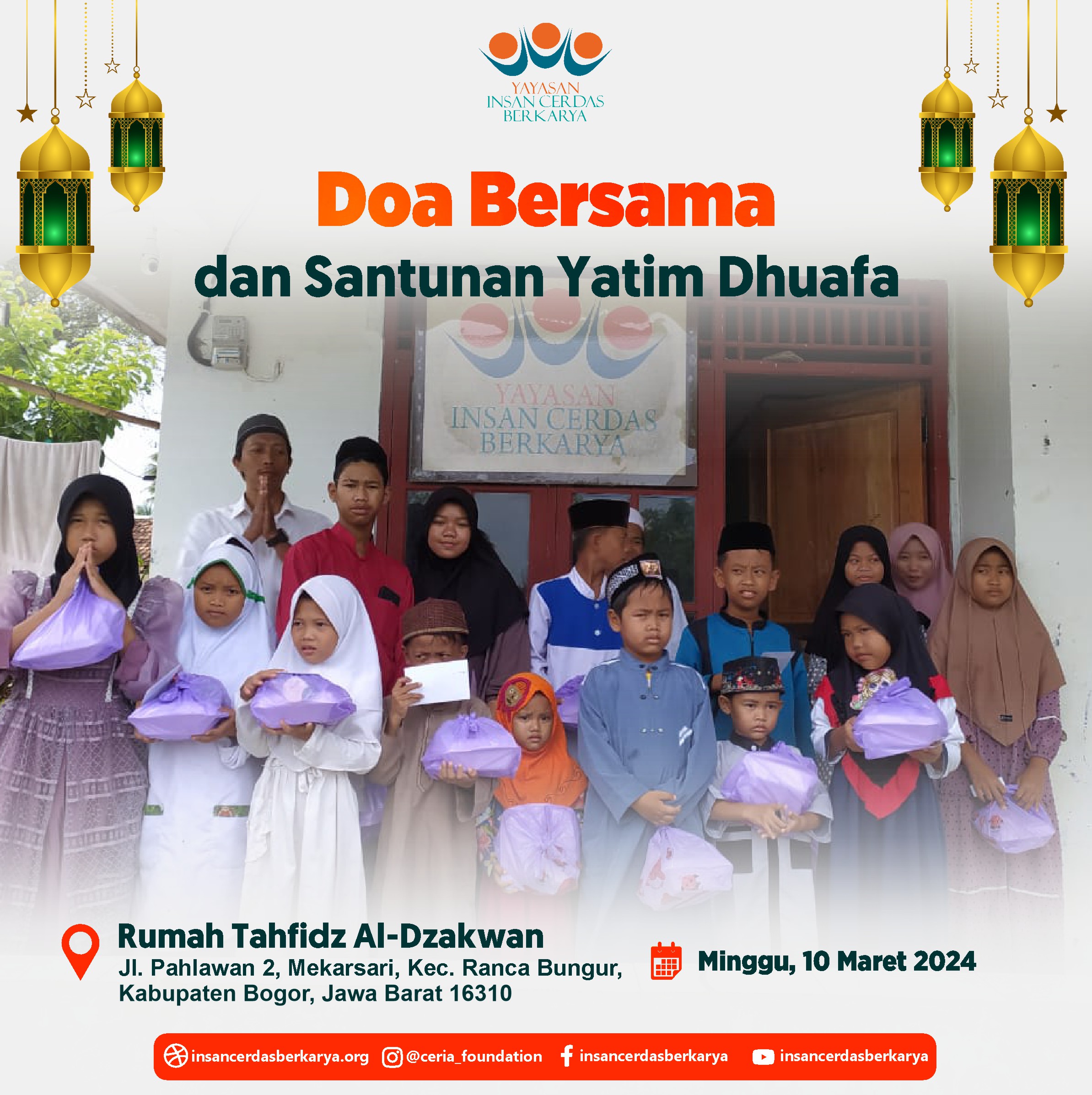 Allhamdulillah Kegiatan Do’a Bersama dan Santunan Pekanan untuk anak-anak yatim dhuafa Rumah Yatim Ceria YICB hari Ahad tanggal 26 Mei 2024 juga telah terlaksana dengan baik dan lancar. Dan Untuk keluarga tercinta yg telah mendahului kita, Almarhum/mah, Semoga mendapatkan Ampunan, Lapang kuburnya, dan diberikan tempat terbaik Disisi Nya. Aamiin ????