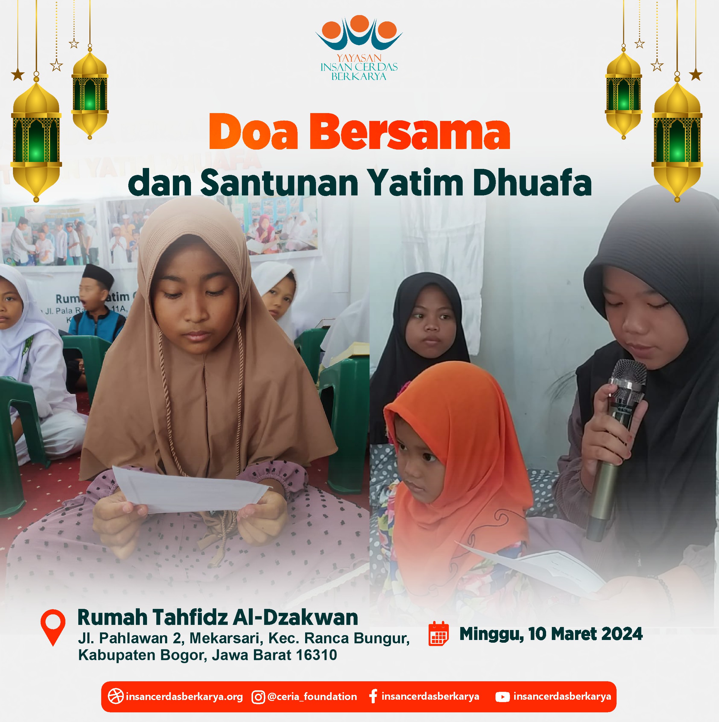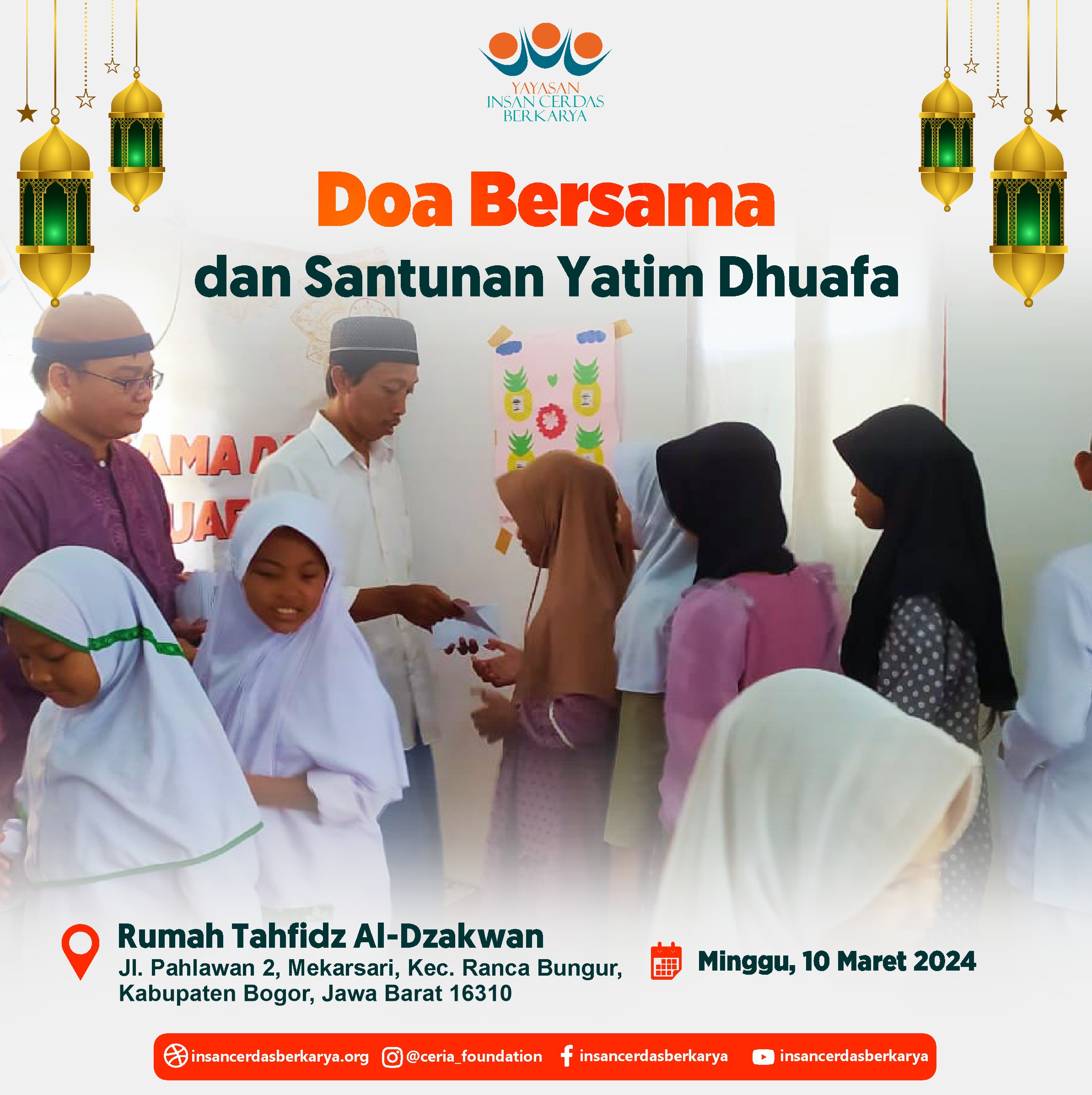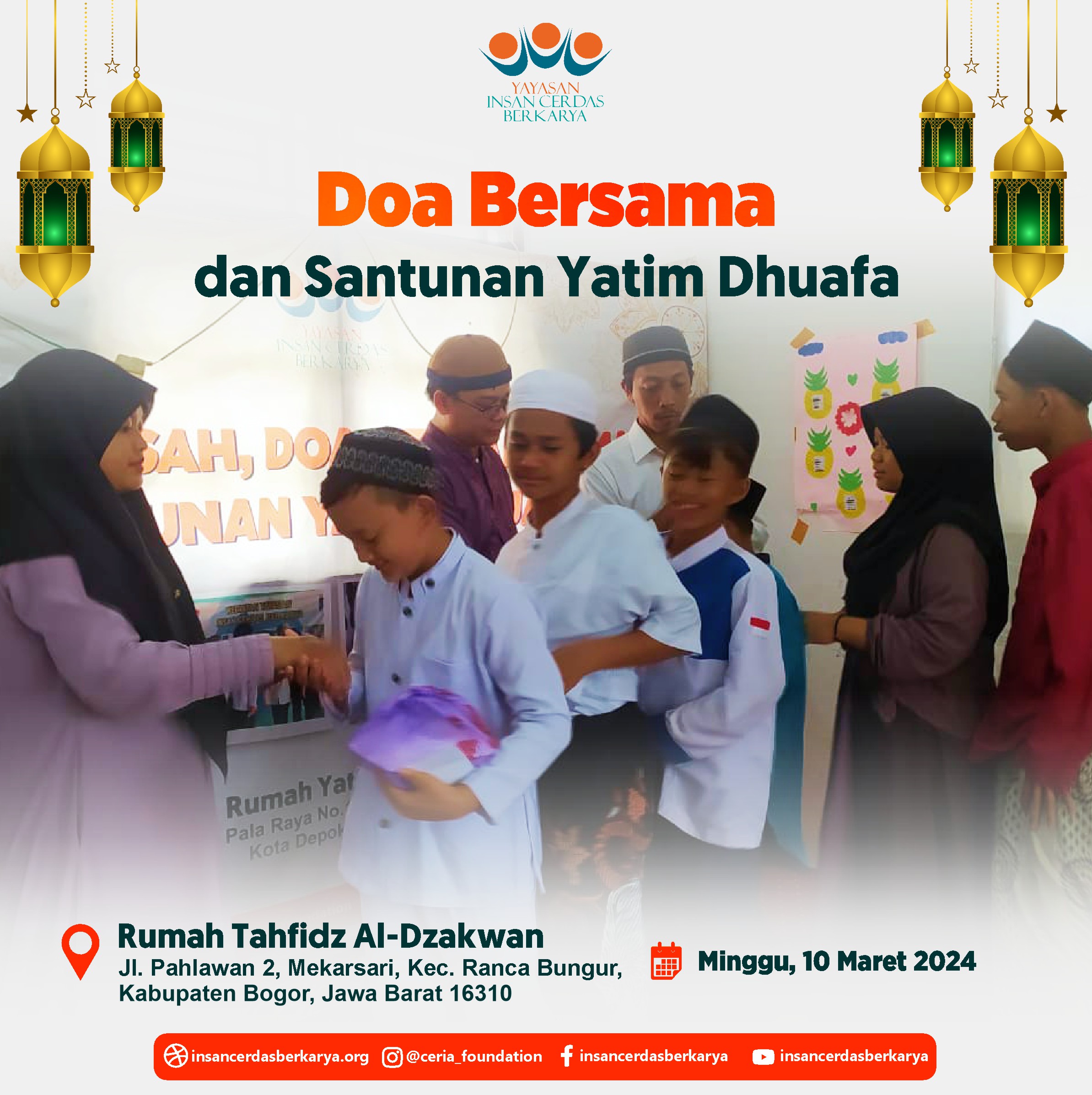 Allhamdulillah Kegiatan Do’a Bersama dan Santunan Pekanan untuk anak-anak yatim dhuafa Rumah Yatim Ceria YICB hari Ahad tanggal 26 Mei 2024 juga telah terlaksana dengan baik dan lancar. Dan Untuk keluarga tercinta yg telah mendahului kita, Almarhum/mah, Semoga mendapatkan Ampunan, Lapang kuburnya, dan diberikan tempat terbaik Disisi Nya. Aamiin ????
