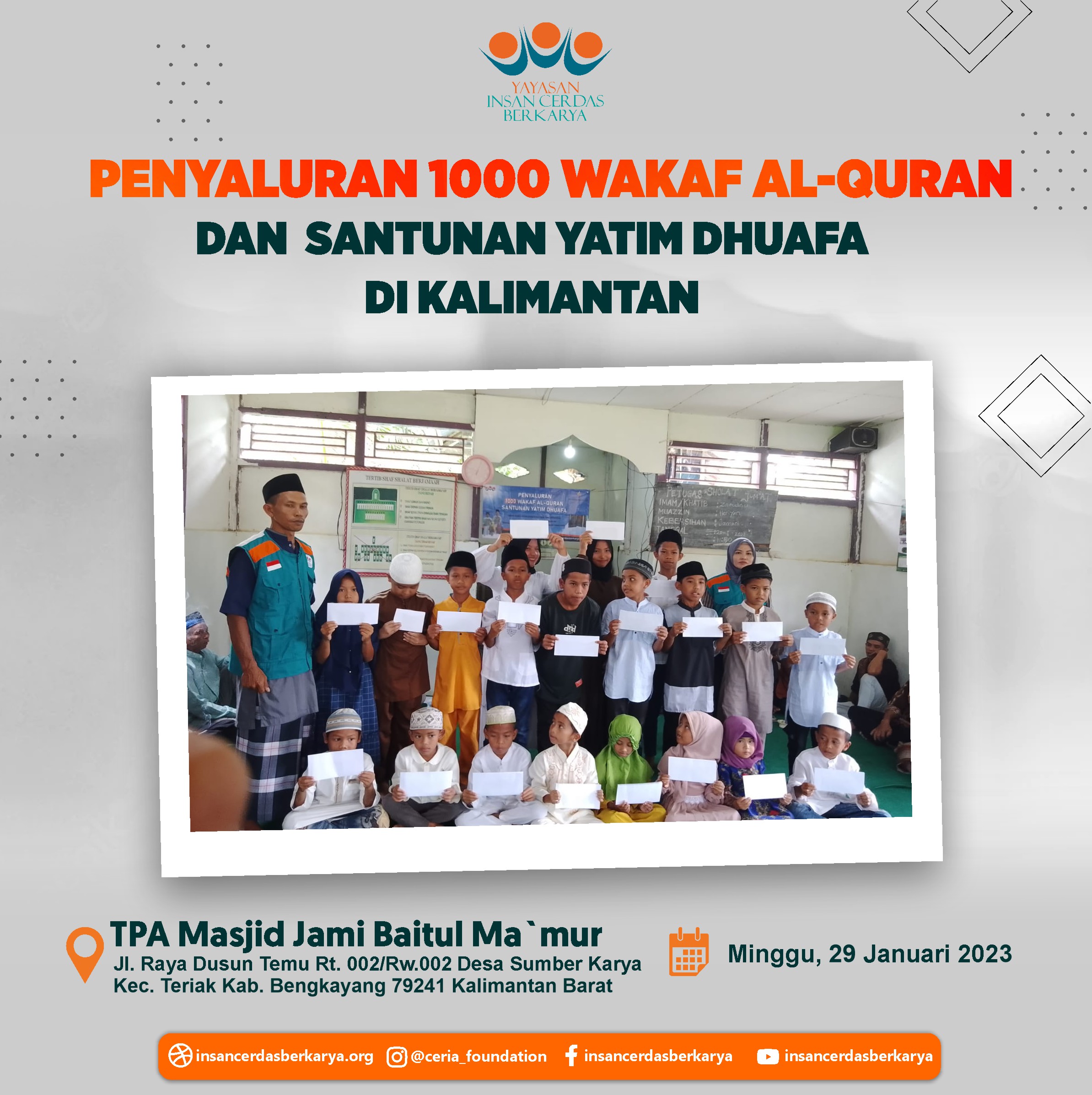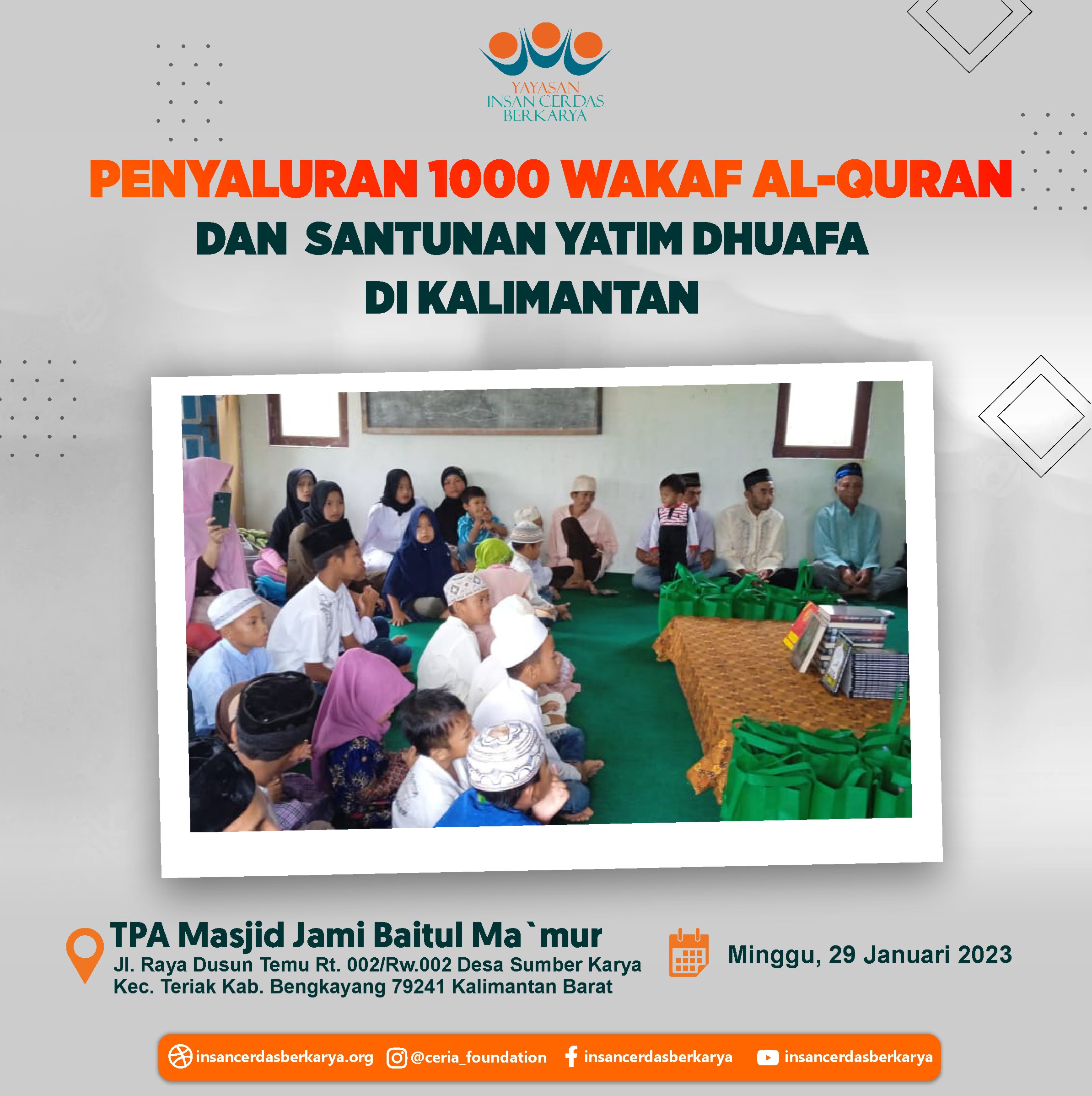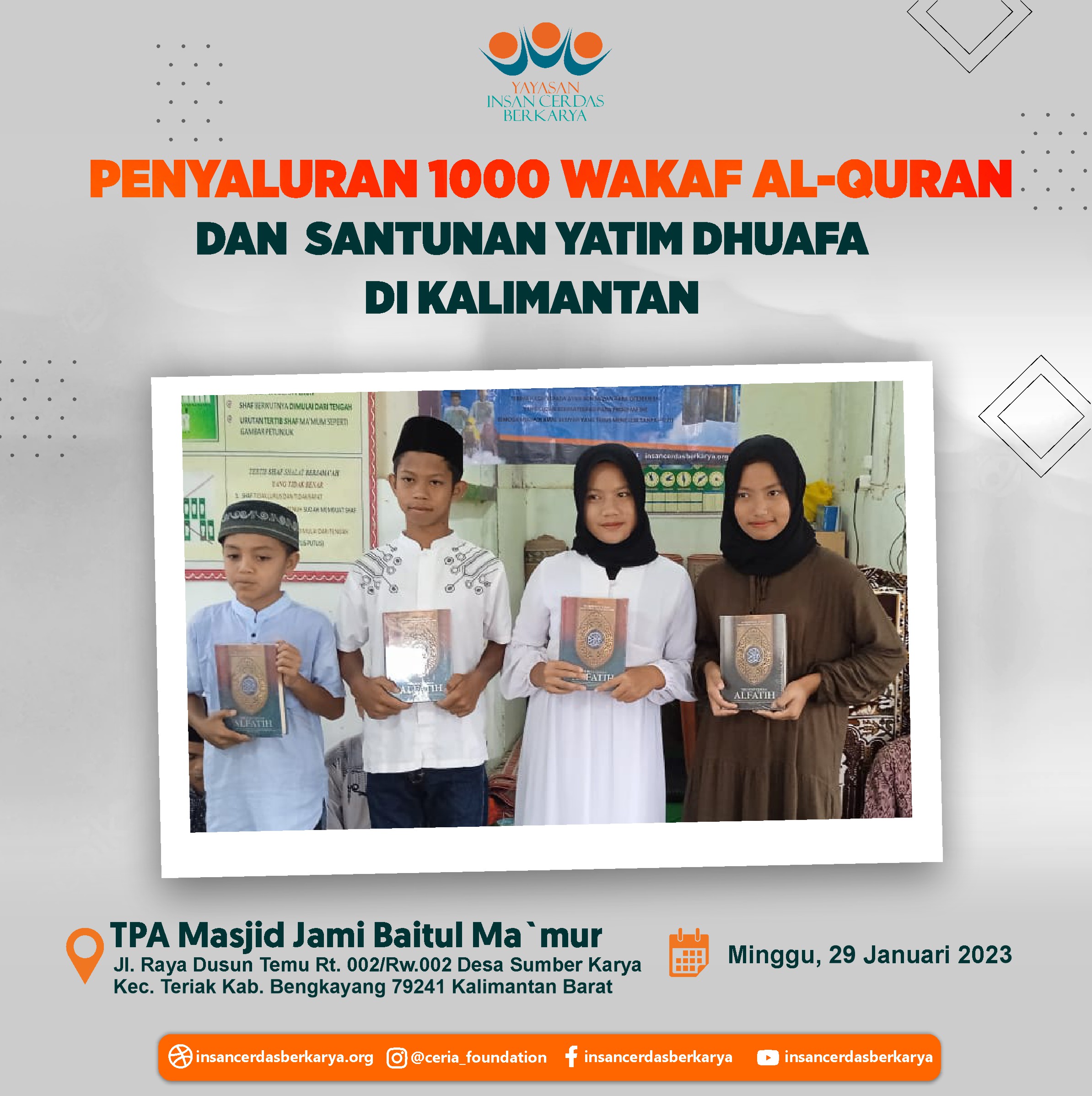 Atas nama Yaysan Insan Cerdas Berkarya.