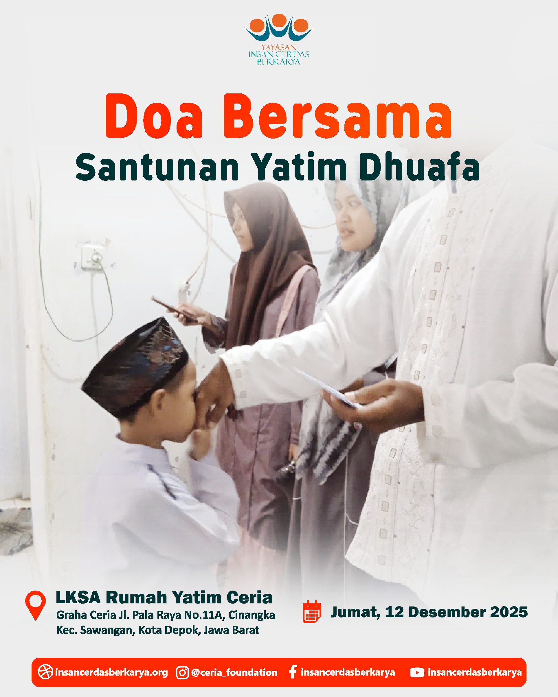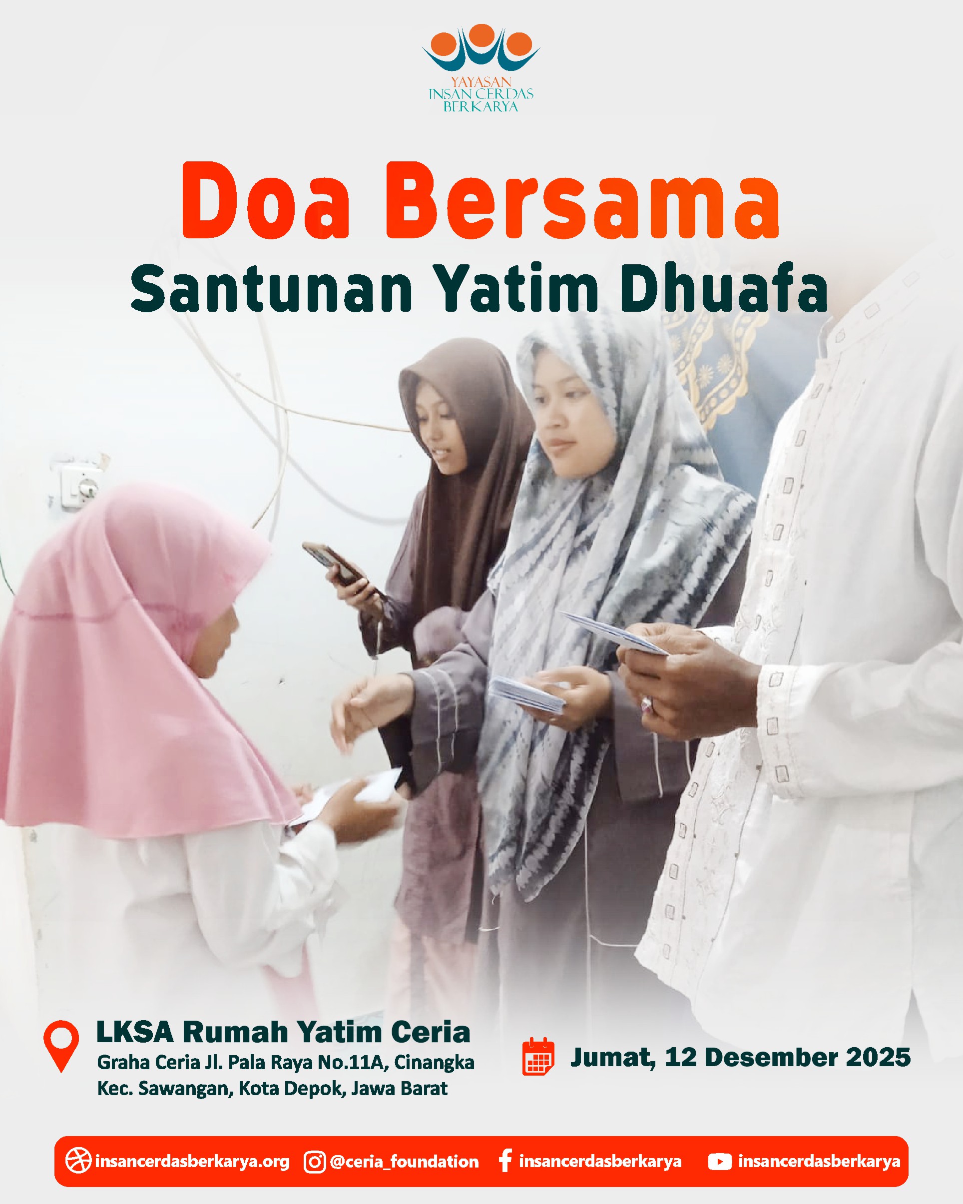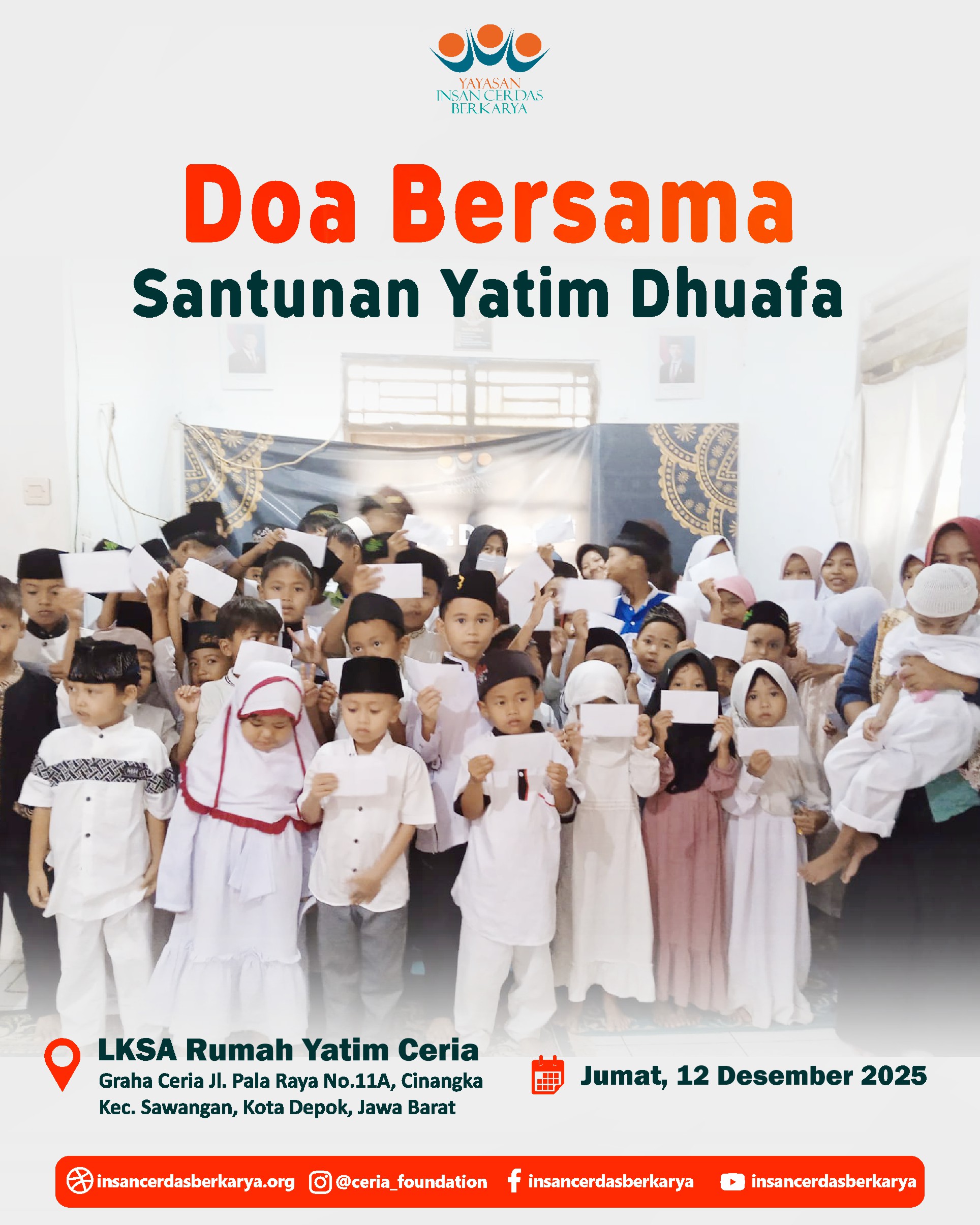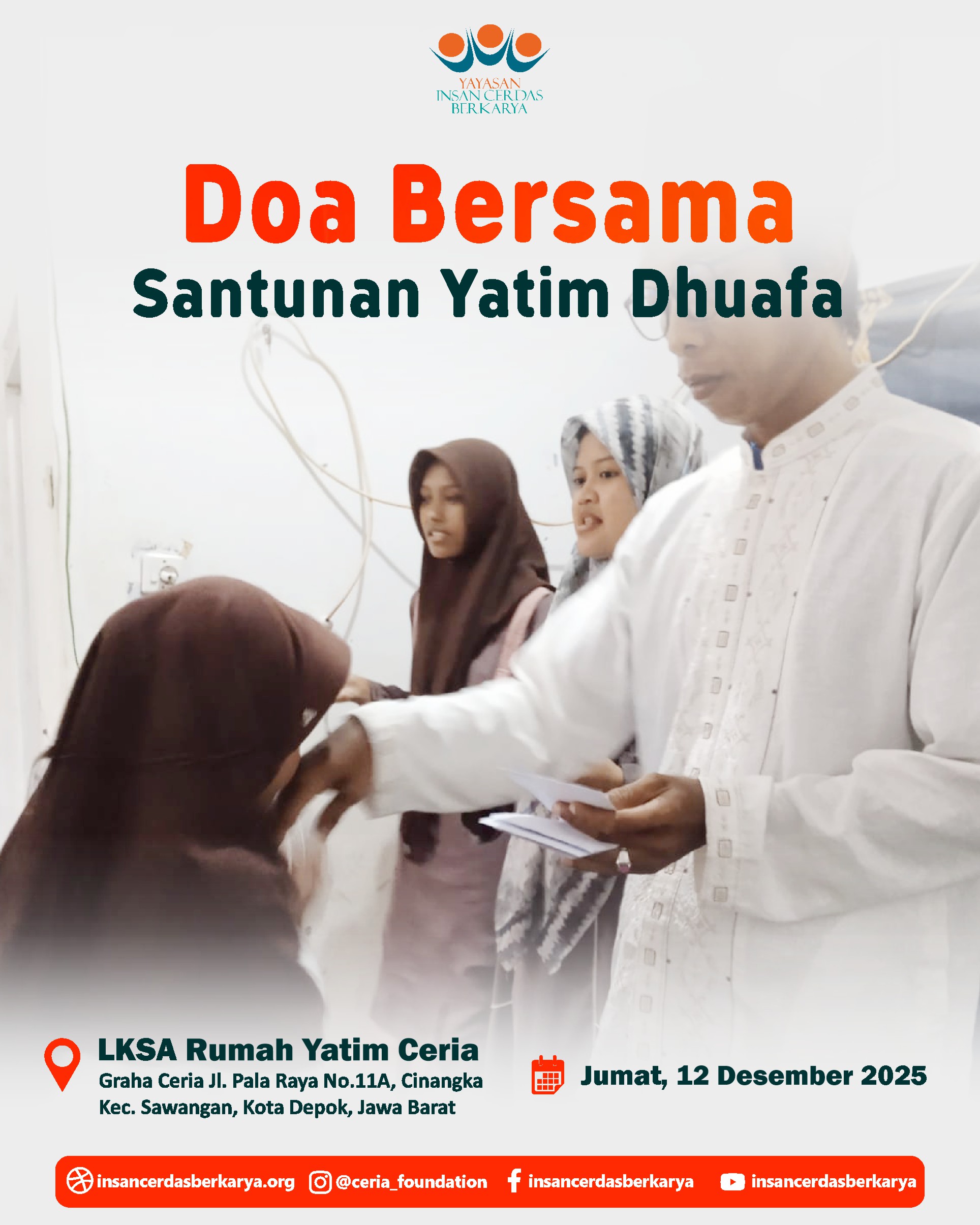 Alhamdulillah bersyukur dengan penuh kehangatan dan kebahagiaan atas terlaksananya kembali kegiatan rutin Doa Bersama dan Santunan “Jum’at Berbagi Makan BerGizi” pada hari Jum’at, 12 Desember 2025 untuk anak-anak binaan LKSA Rumah Yatim Ceria YICB di Cimanggu, Bogor.