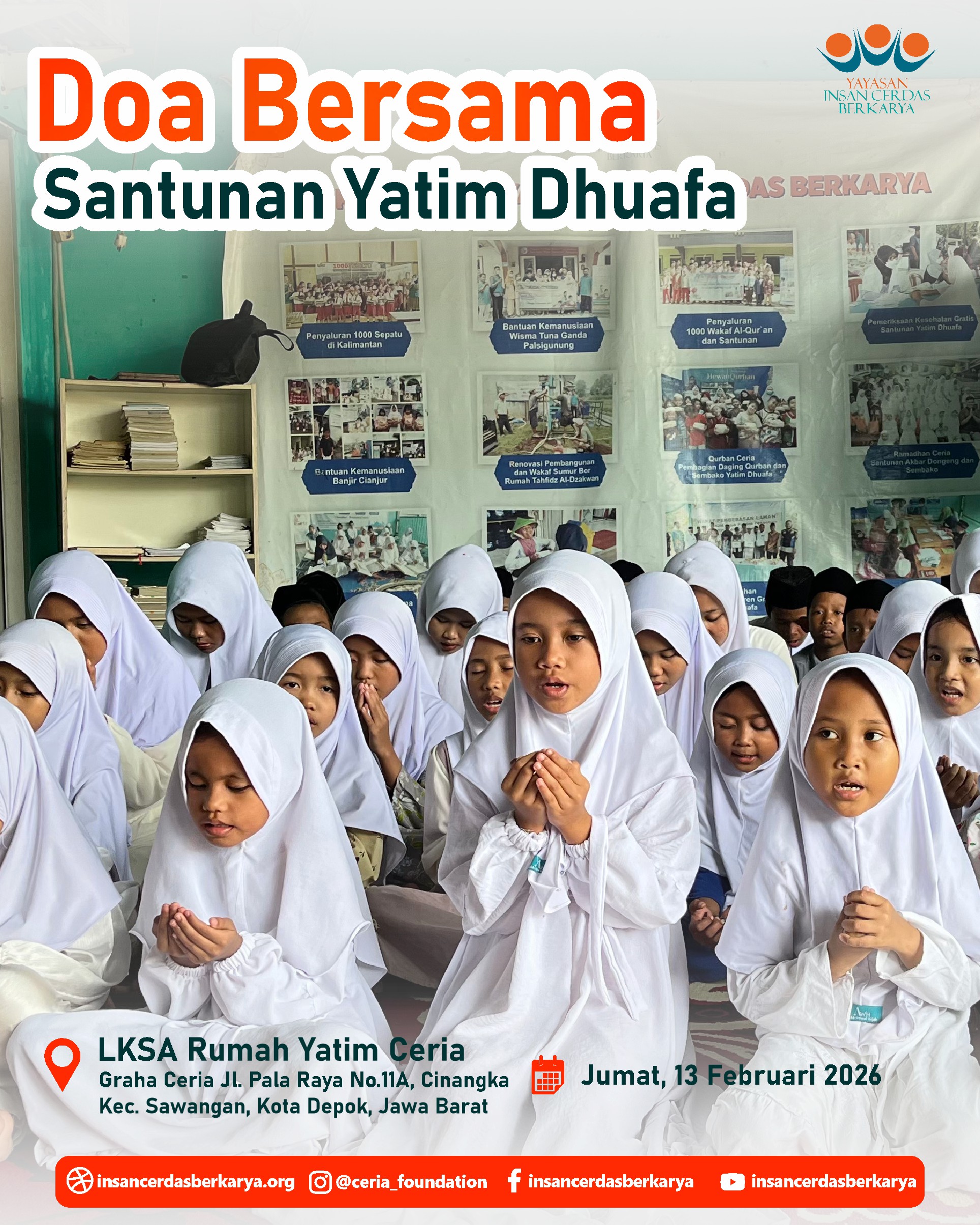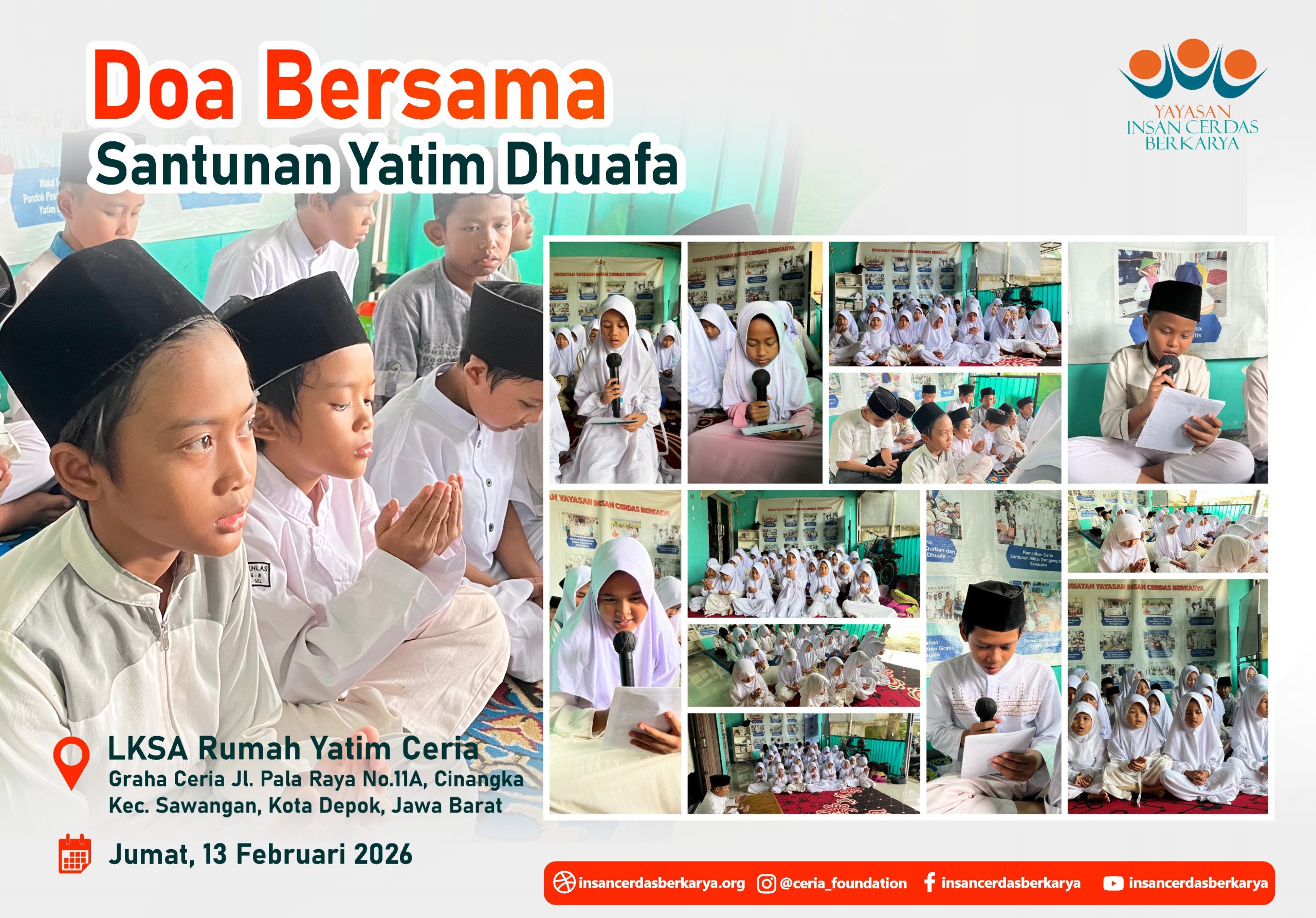 Mengucap syukur Alhamdulillah atas terlaksananya kembali kegiatan rutin Doa Bersama dan Santunan Jum’at Berbagi Makan BerGizi untuk adik-adik yatim dhuafa LKSA Rumah Yatim Ceria YICB di Cinangka Depok hari Jumat tanggal 13 februari 2026. Suara lirih, Tangan-tangan mungil mereka tengadah, doa-doa mereka mengetuk pintu langit dengan ketulusan yang murni memohon keberkahan bagi para donatur dan orang-orang baik yang senantiasa menjadi jembatan kebahagiaan mereka.