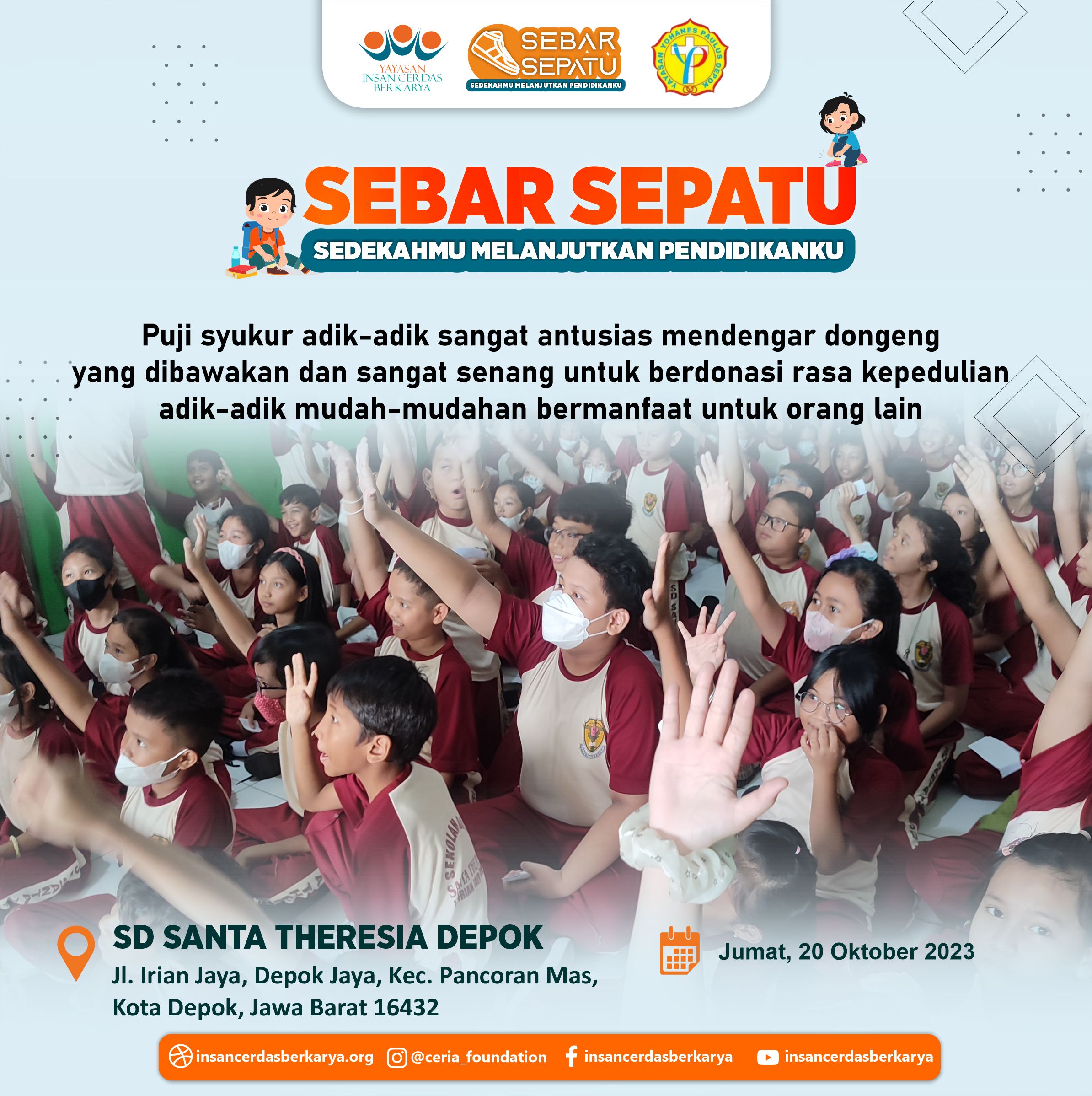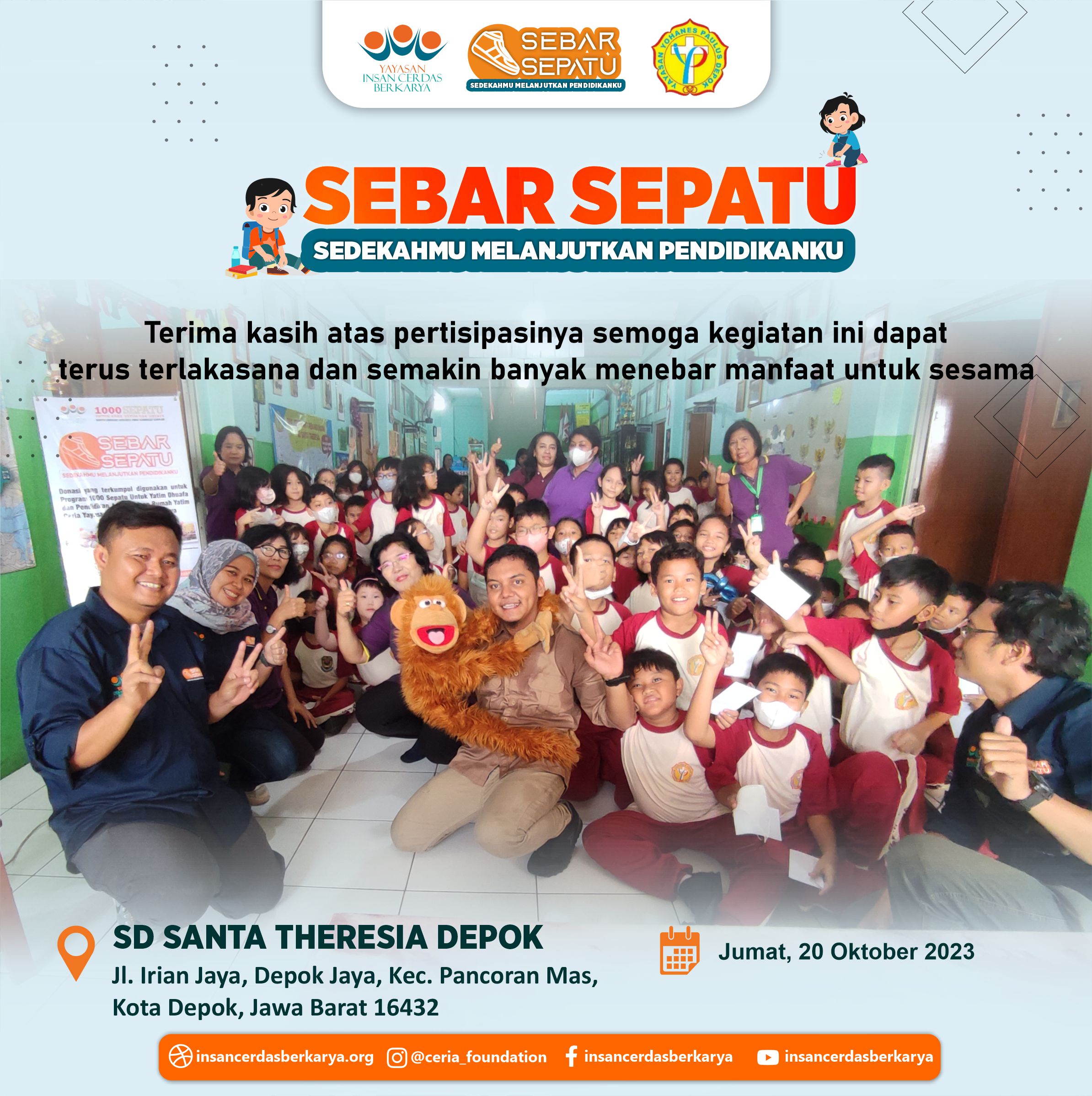 Terima kasih kepada adik-adik, orang tua, dan para guru SD SANTA THERESIA atas partisipasi dan kepeduliannya kepada program sebar sepatu